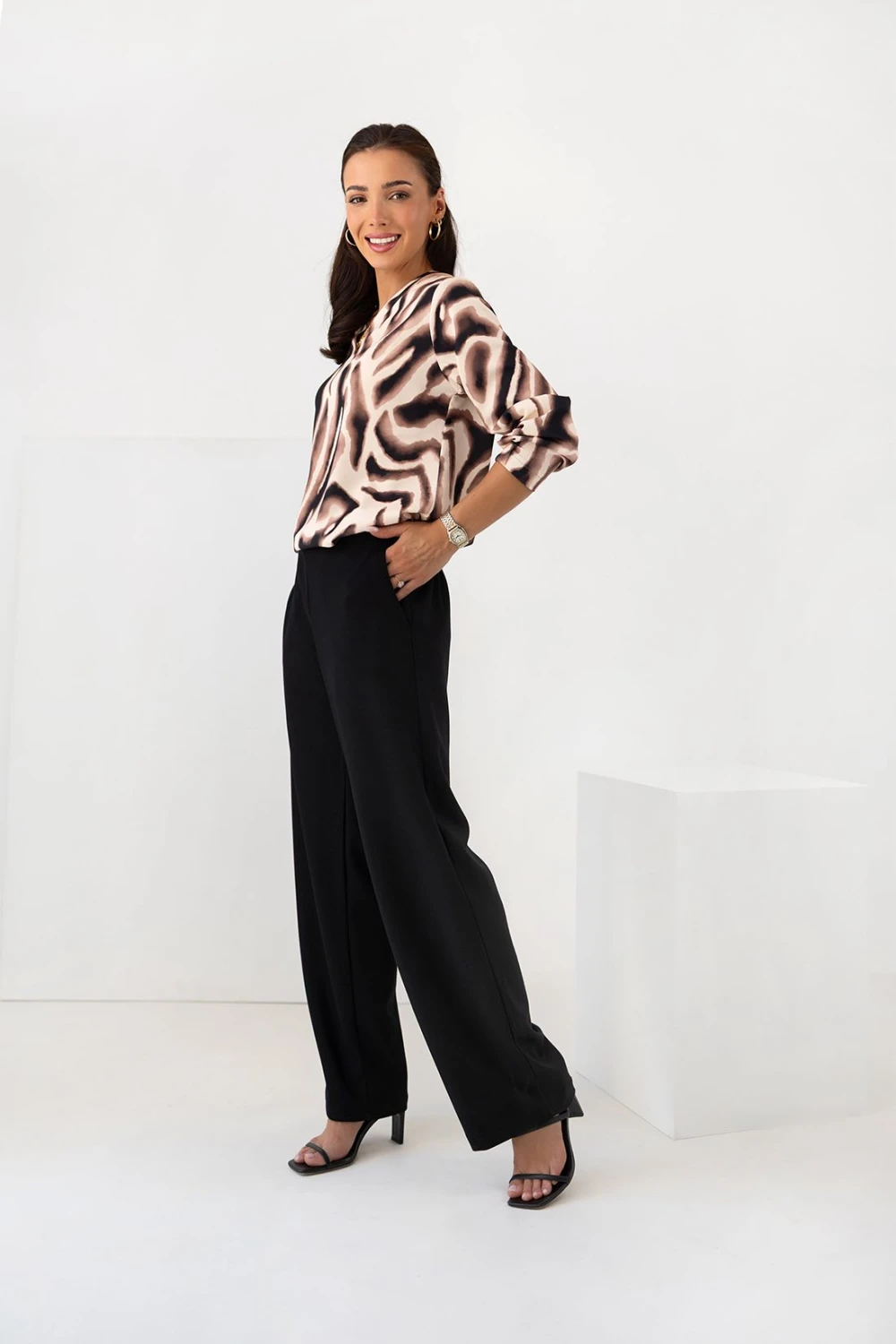 Bluza animal print din vascoza cu maneca lunga si decolteu in V, o piesă unică cu imprimeu animal. Realizată dintr-un material plăcut la atingere, aceasta se potrivește perfect cu o pereche de pantaloni sau o fustă creion, fiind ideală pentru birou sau o ieșire elegantă.