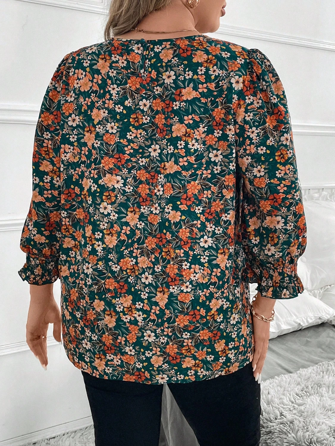 Camasa marime mare inflorata multicolora cu mansete elastice