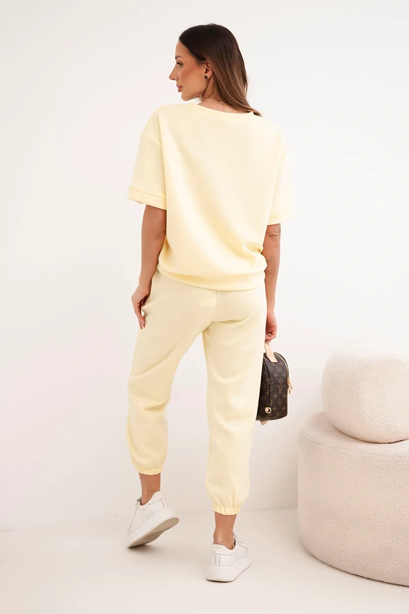 Compleu dama galben din vascoza, alegerea perfecta pentru femeile care cauta o piesa vestimentara lejera, realizata dintr-un material natural si catifelat la atingere. Aceasta tinuta se remarca prin fluiditatea vascozei, care ofera o senzatie de prospetime pe tot parcursul zilei si o cadere eleganta pe corp, adaptandu-se perfect siluetei tale. Topul are o croiala moderna de tip oversized pentru un plus de libertate, in timp ce pantalonii sunt dotati cu o banda elastica in talie, snur pentru reglare si mansete elastice la glezne pentru un look urban si relaxat. Nuanta galbena este usor de asortat cu incaltaminte sport alba sau accesorii in culori neutre, transformand acest set intr-o optiune ideala atat pentru activitatile cotidiene, cat si pentru momentele de relaxare. Materialul de calitate superioara garanteaza durabilitate si un confort termic optim, fiind un set versatil care nu trebuie sa lipseasca din garderoba ta de sezon.