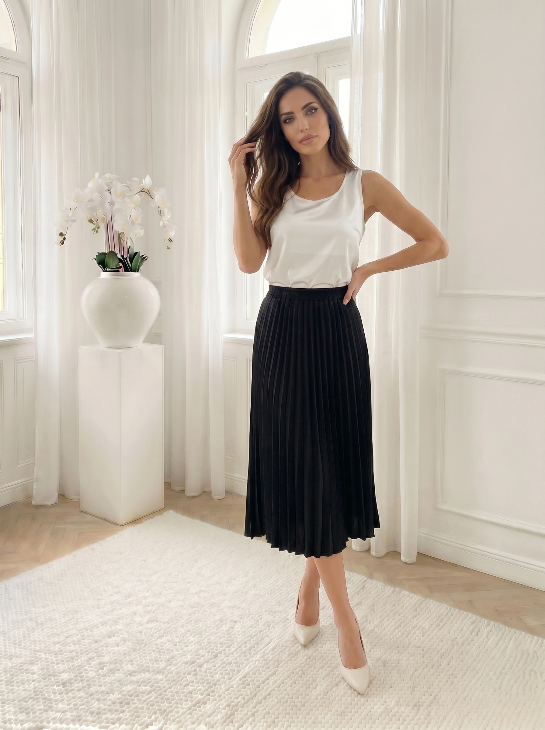 fusta-midi-plisata-neagra-cu-talie-elastica
