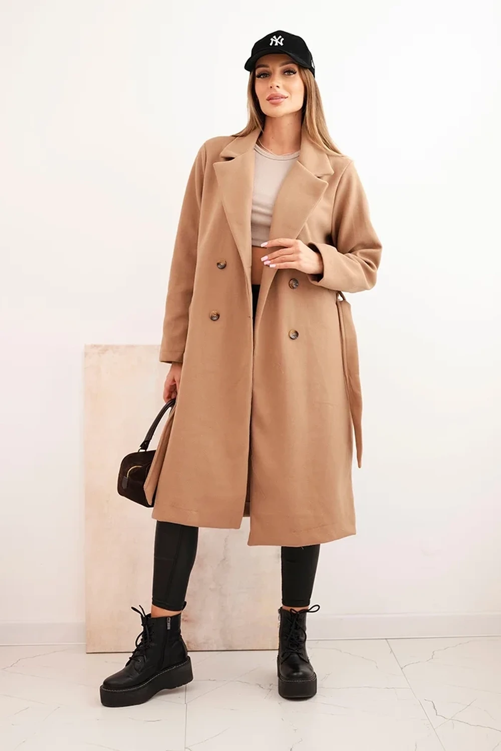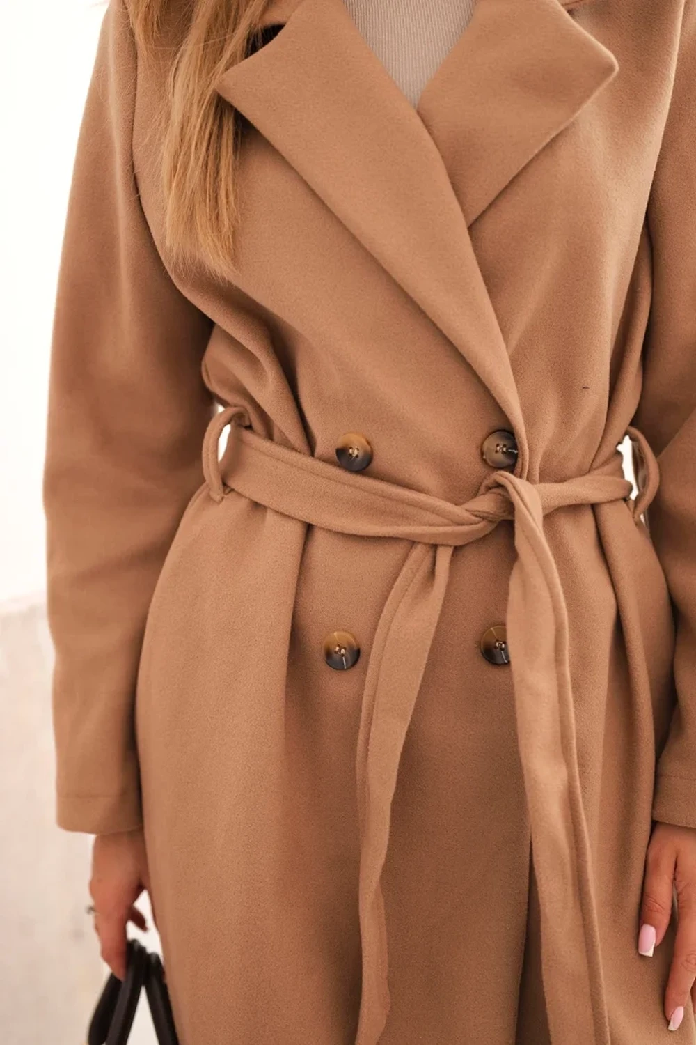 Palton lung bej cu croiala clasica si cordon, un articol care adauga un aer elegant si modern oricarei tinute de sezon. Realizat dintr-un material moale si placut la atingere, ofera confort termic si o silueta bine definita datorita cordonului reglabil in talie. Designul cu rever amplu si inchidere dubla cu nasturi decorativi confera un aspect rafinat, perfect atat pentru tinutele casual, cat si pentru cele de birou. Poarta-l cu botine, pantaloni din piele si o geanta minimalista pentru un look sofisticat si actual. Ideal pentru zilele reci de toamna sau iarna, acest palton bej este o piesa esentiala in garderoba ta.