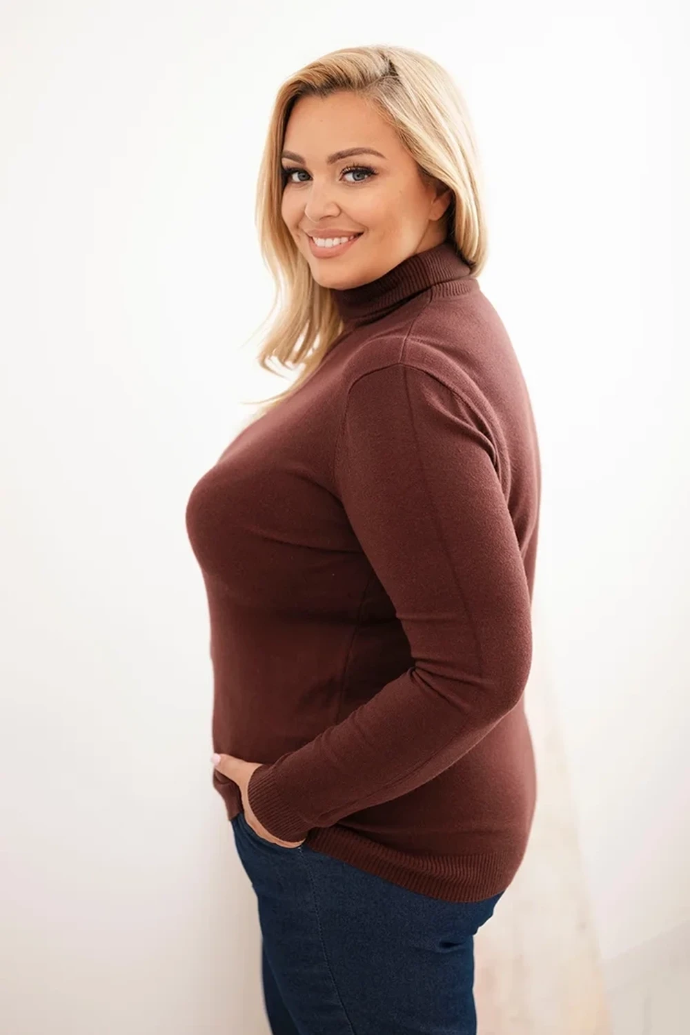 Pulover marime mare maro pe gat din tricot fin este alegerea ideala pentru un look elegant si modern in sezonul rece. Realizat din material moale si placut pe piele, ofera confort pe durata intregii zile. Croiul slim avantajeaza silueta, iar manecile lungi adauga un plus de rafinament. Poarta-l cu jeansi, fuste sau pantaloni eleganti pentru a obtine un outfit complet. Este o piesa must-have in garderoba de iarna, ideala pentru femeile care apreciaza stilul clasic cu accente moderne.