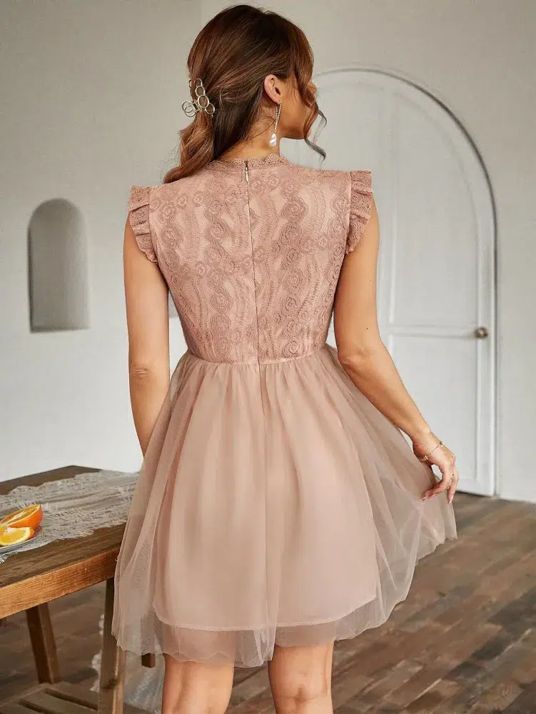 Rochie Barbara Powder, cu detalii din dantela si volanase
