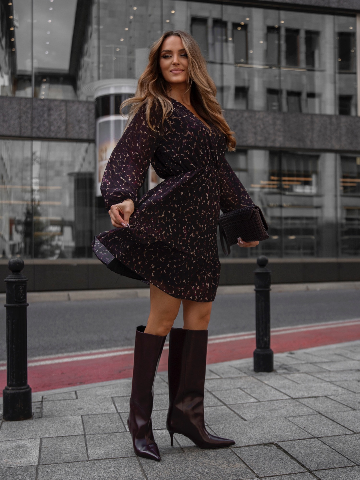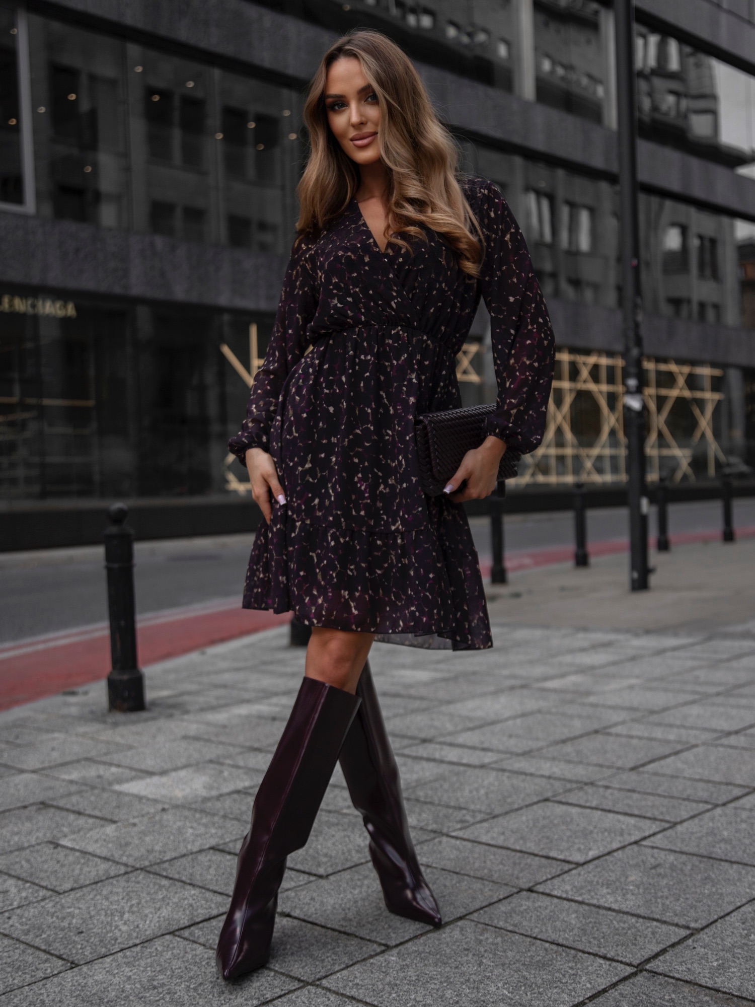 Rochie ciocolatie cu imprimeu abstract, decolteu petrecut si captuseala, o alegere eleganta si versatila pentru garderoba de sezon. Realizata dintr-un material vaporos, cu textura delicata si croi lejer, pune in valoare silueta fara a compromite confortul. Decolteul petrecut adauga un plus de feminitate, iar talia elastica accentueaza linia corpului. Manecile lungi, usor transparente, ofera un aer rafinat, in timp ce volanul amplasat la baza confera miscare si stil. Imprimeul abstract in tonuri calde transforma aceasta rochie intr-o piesa de efect, ideala pentru tinute casual chic sau elegante.