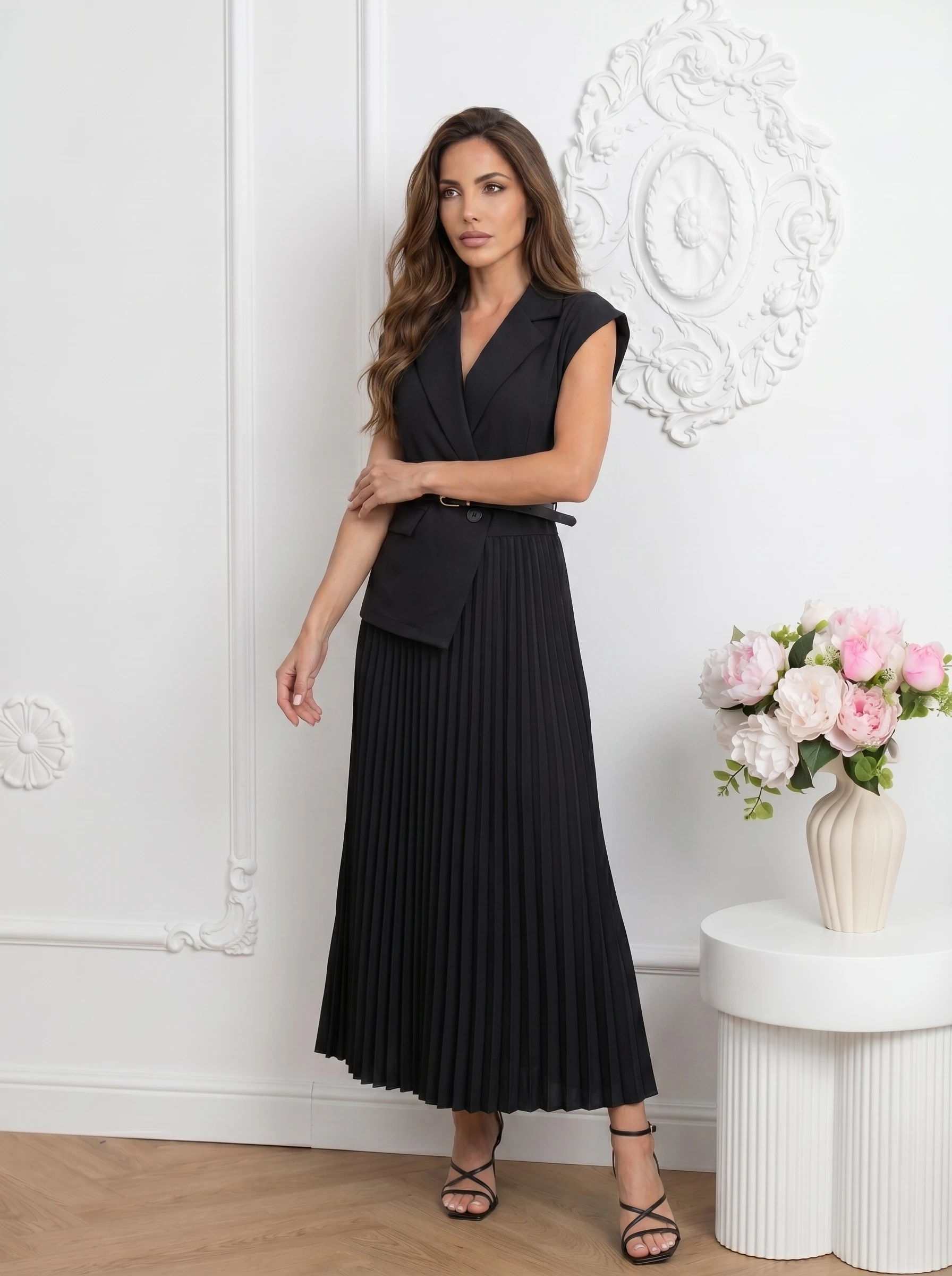 rochie-neagra-eleganta-tip-sacou-cu-fusta-plisata-si-curea