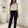 Pantaloni drepti negri cu talie elastica