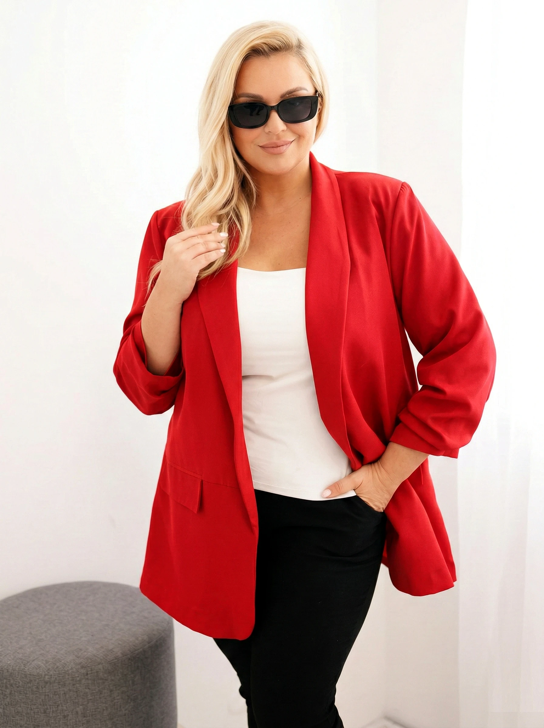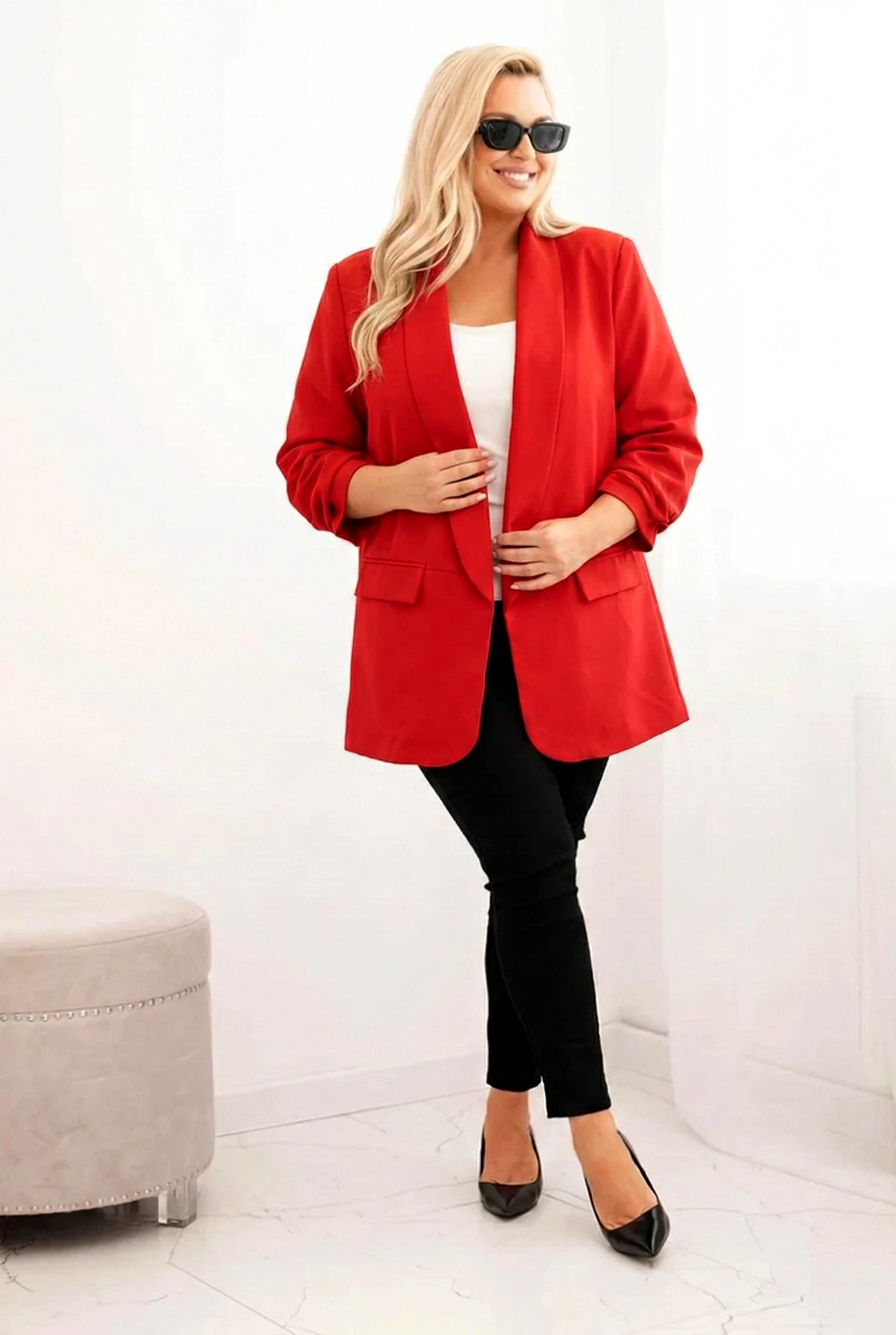 sacou-elegant-marime-mare-rosu-cu-maneci-drapate