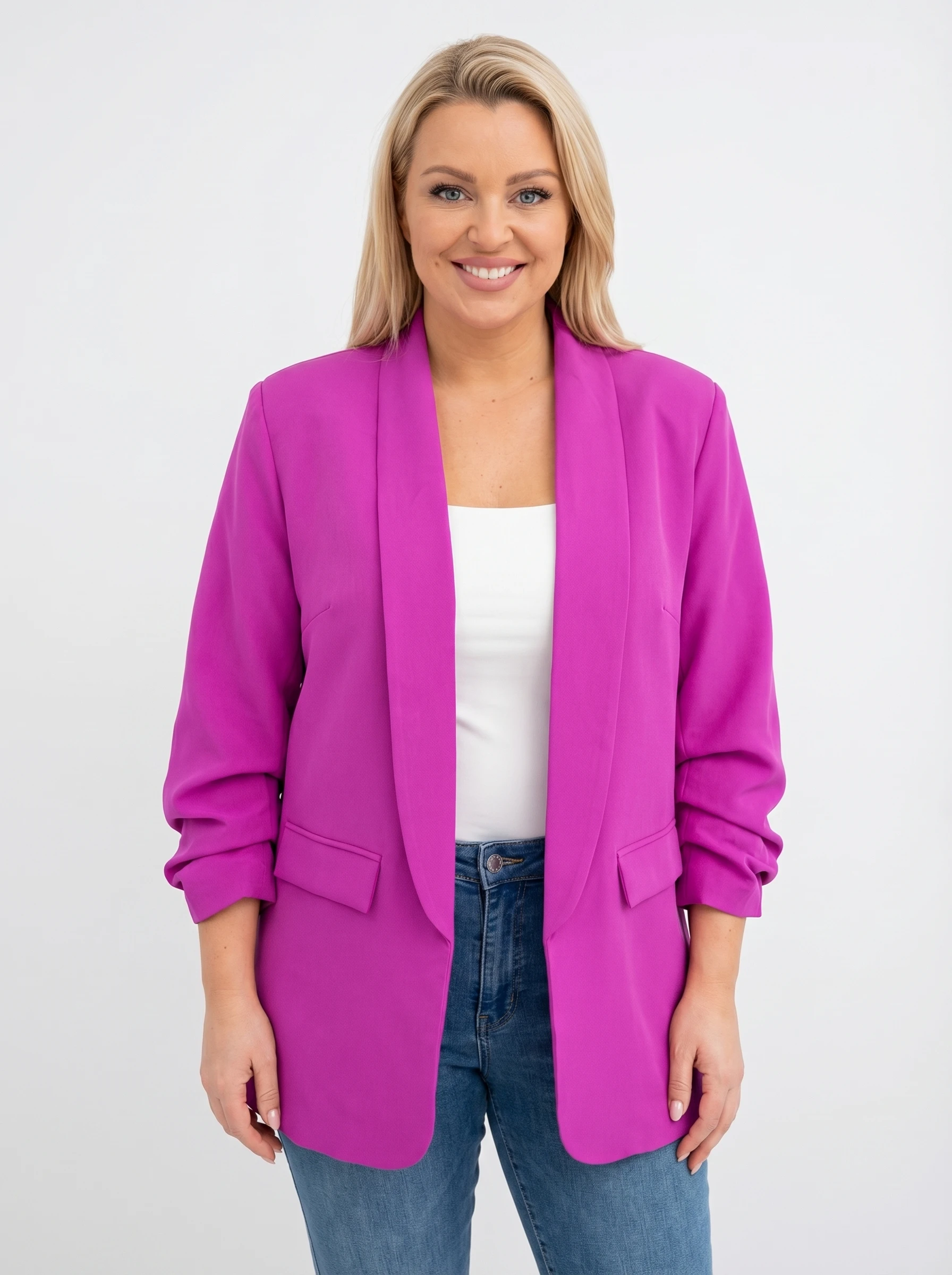 Sacou elegant marime mare violet cu maneci drapate Fancy – stil casual È™i elegant